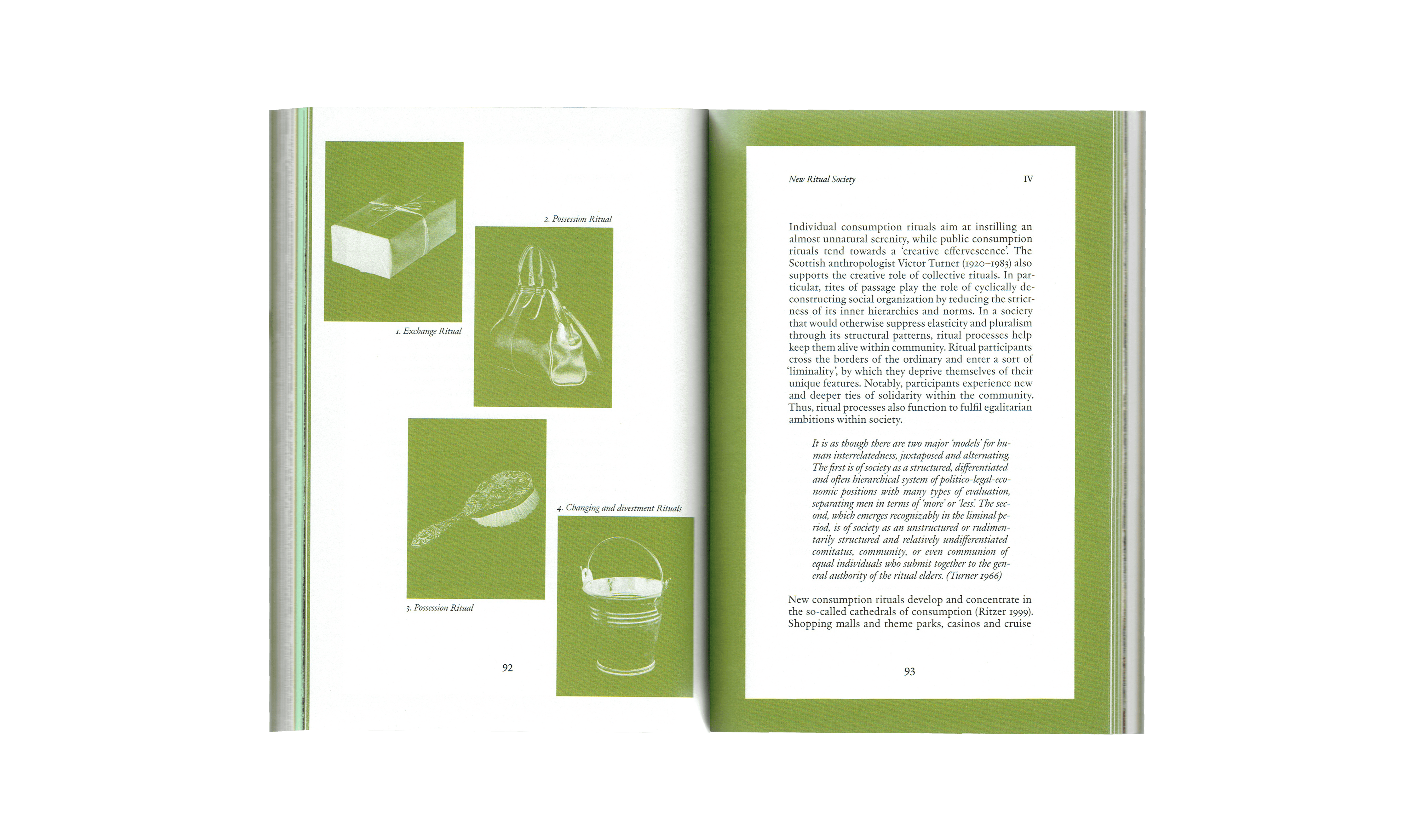 The act of consumption replaced the true essence of religion and faith and made rituals an increasingly individual act, becoming removed from the community and more focused on capitalist values. It discusses how consumerism is a powerful ritual “machine” that makes up for the modern world’s lack of ethics with new rituals and symbols.